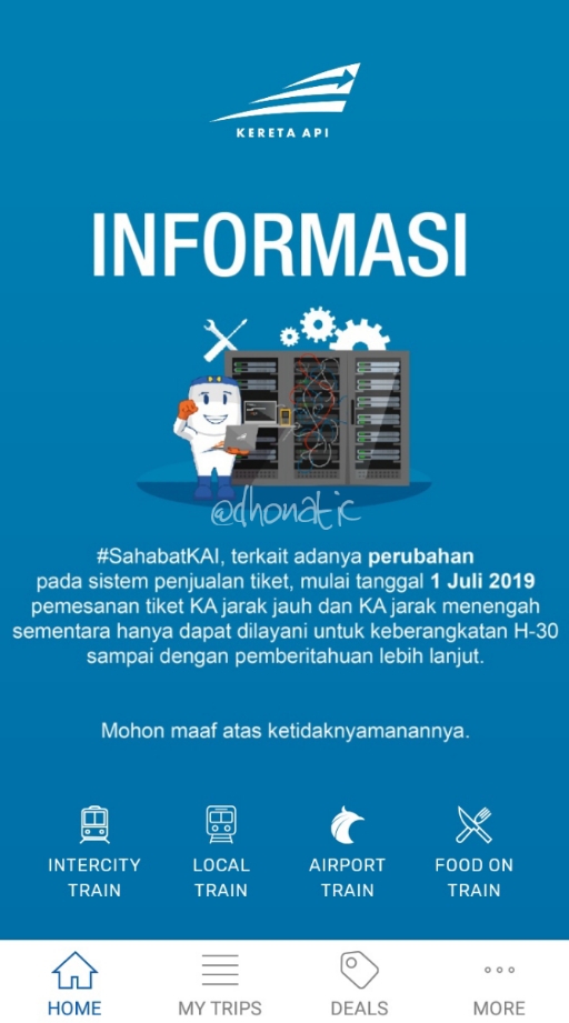 1. Buka aplikasi KAI Access, maka akan muncul splash screen semacam ini dan menu di bawahnya.